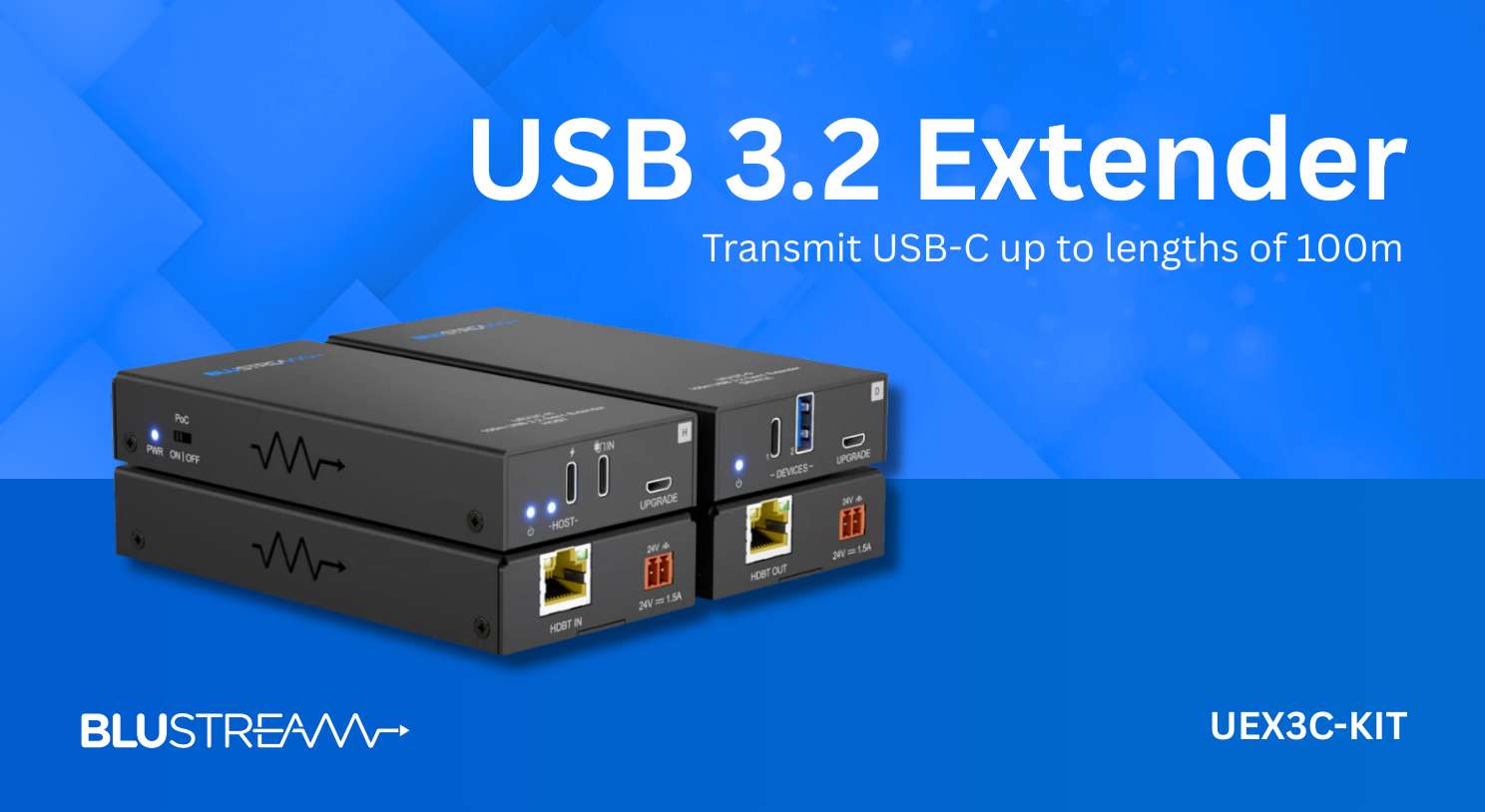 Blustream Launches EUX3C-KIT: 100m USB 3.2 Gen1 Extender Using HDBaseT