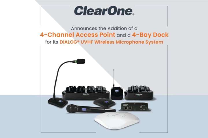 ClearOne Expands DIALOG UVHF Wireless Microphone System with New 4-Channel Access Point and 4-Bay Dock