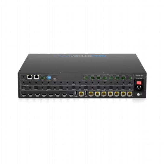 The HMX88-18G is an 8x8 uncompressed HDMI 2.0 matrix leveraging HDBaseT3™ technology for professional AV installations. It supports HDCP 2.3/2.2, 4K 60Hz 4:4:4 UHD, HDR10/10+, Dolby Vision, and delivers HDMI, bi-directional IR & RS-232, ARC, 1Gb Ethernet, and PoC over a single CAT6A cable up to 100m.